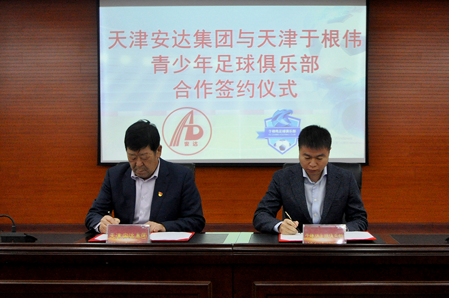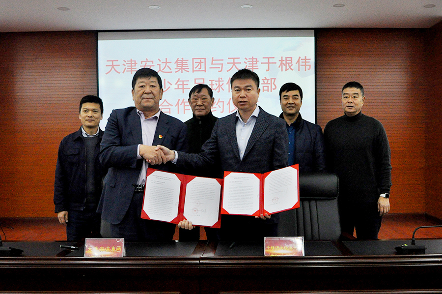 青少年足球运动的发展,需要方方面面的鼎力支持,今天,天津安达集团党委书记、董事长崔洪金,与于根伟共同签署了公益合作协议,2021年,安达集团将提供专项公益资金,用于支持于根伟青少年足球俱乐部组织比赛、队伍建设、竞训保障,以及增强基层青训教练、家长、孩子们投身足球运动的信心和热情。俱乐部副总经理王俊、足坛名宿蔺新江,与安达集团代表共同参与了签约活动。