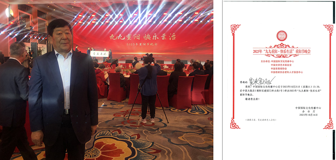 10月21日,由中国国际文化传播中心、中国文学艺术基金会、中国老教授协会、中国老龄协会老年人才信息中心主办的“九九重阳•快乐生活”文艺晚会在京举行。中国国际文化传播中心执行主席龙宇翔出席并致辞。安达集团党委书记、董事长、中国爱心工作委员会副主席崔洪金受邀参加。