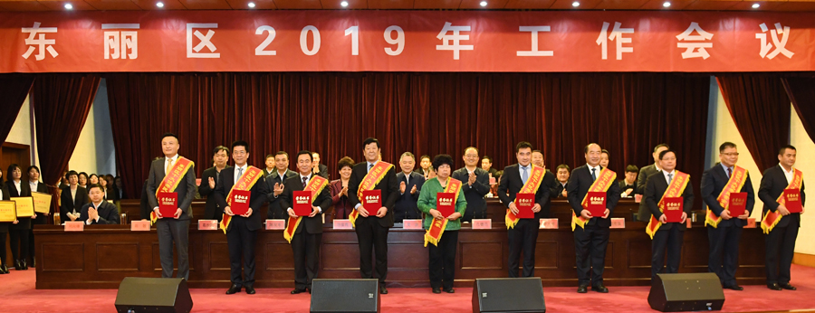 2月20日下午,我区召开2019年工作会议,认真贯彻习近平新时代中国特色社会主义思想和党的十九大精神,深入落实习近平总书记在天津考察工作和京津冀协同发展座谈会上的重要讲话精神,按照市委十一届五次全会和区委十一届九次全会要求,对今年全区各项重点工作任务进行再动员、再部署,进一步统一思想、凝心聚力,顽强拼搏、扎实苦干,奋力开启东丽绿色高质量发展新征程,推动美丽东丽建设再上新水平。区委书记夏新,区委副书记、区长孔德昌,区人大常委会主任孙富霞,区政协主席李大勇等区领导出席,安达集团党委书记董事长崔洪金作为十大优秀民营企业家之一参会并上台领奖。