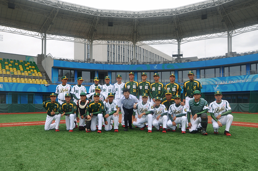 安达集团党委书记董事长崔洪金及市区相关领导与天津安达雄狮棒球队合影留念