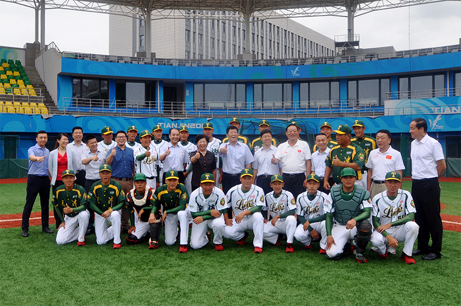 最后,天津市体育局党委书记、局长李克敏与天津市安达集团股份有限公司董事长崔洪金在棒球场举行开赛仪式。出席本次活动的还有,安达集团副总经理崔文连,关节动力安达生物科技有限公司总经理陈明。