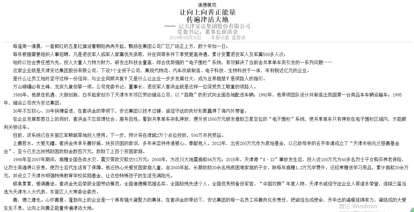 《天津日报》刊发 让向上向善正能量传遍津沽大地-记爱游戏官方网站党委书记董事长崔洪金